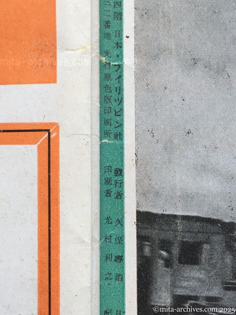 発行所・東京市麹町区内幸町二丁目大阪ビル第一號館四階 日本・フィリッピン社