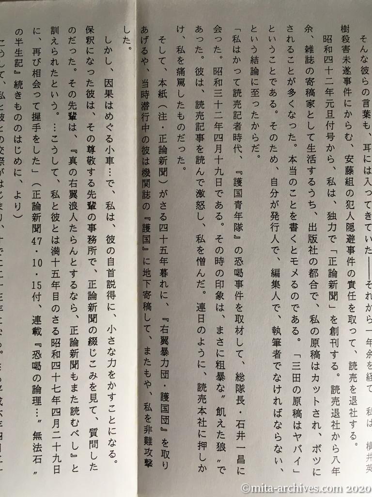 関連資料 元護国団団長・石井一昌著『日本を哭く』推薦の言葉 正論新聞編集長 三田和夫