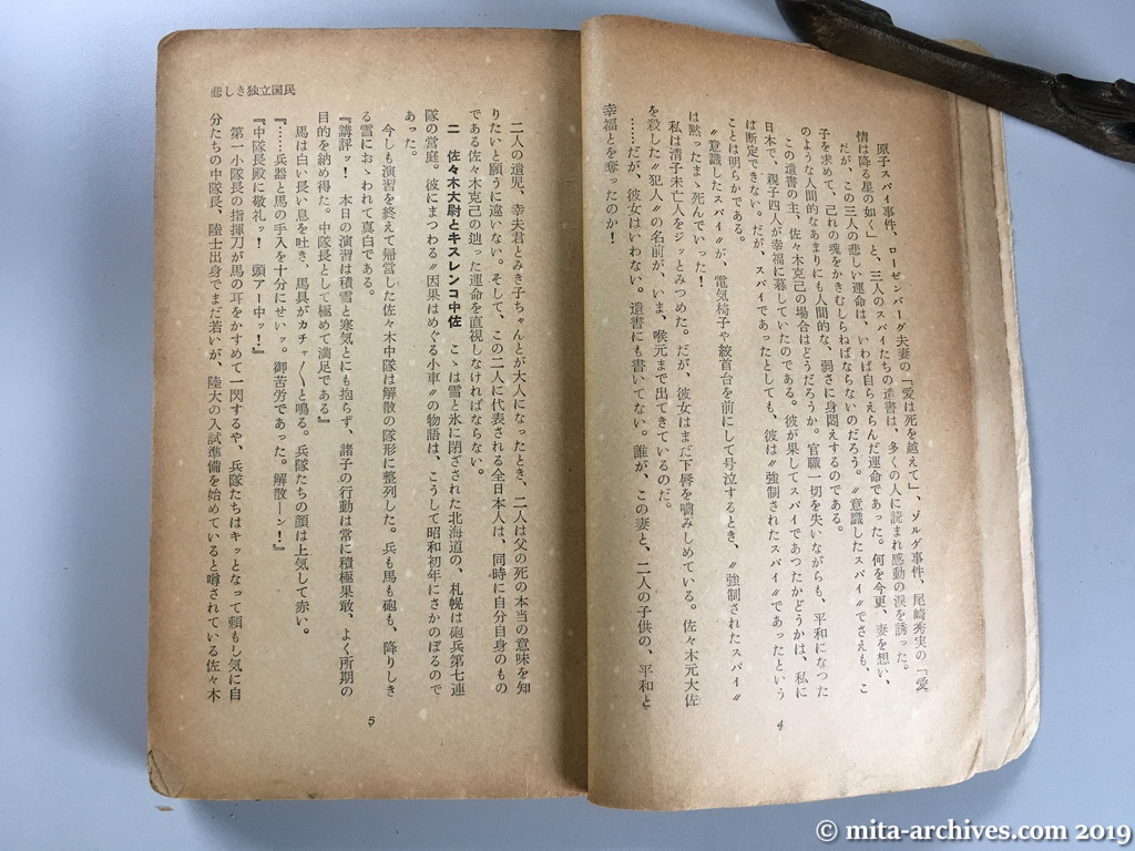 迎えにきたジープ p.004-005 The name of the culprit who killed former Colonel Sasaki has now come to her throat....but she doesn't say. It is not written in the suicide note.