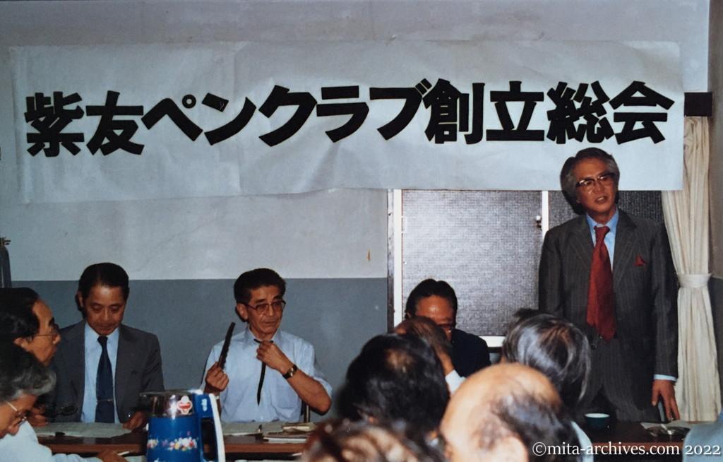 mitakazuo151 ← 前へ 次へ → 編集長ひとり語り第23回 自自公連立のウソだらけ! 平成11年(1999)8月7日 画像は三田和夫63歳(右端 紫友ペンクラブ創立総会1984.09.13)紫友ペンクラブ:五中出身の著述家団体か?
