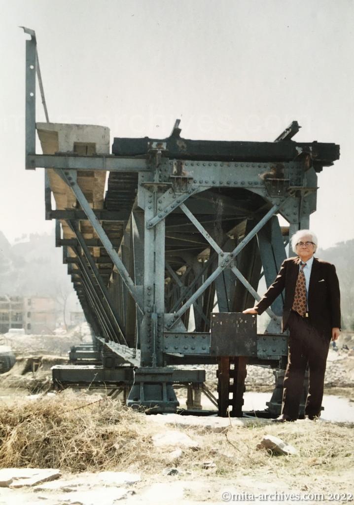 mitakazuo187 ← 前へ 次へ → 編集長ひとり語り第41回 娘たちよ、すぐに男にやらせるな! 平成12年(2000)6月24日 画像は三田和夫73歳(黄河鉄橋1995.02.26)黄河鉄橋:戦時中、三田小隊が守備していた鉄橋
