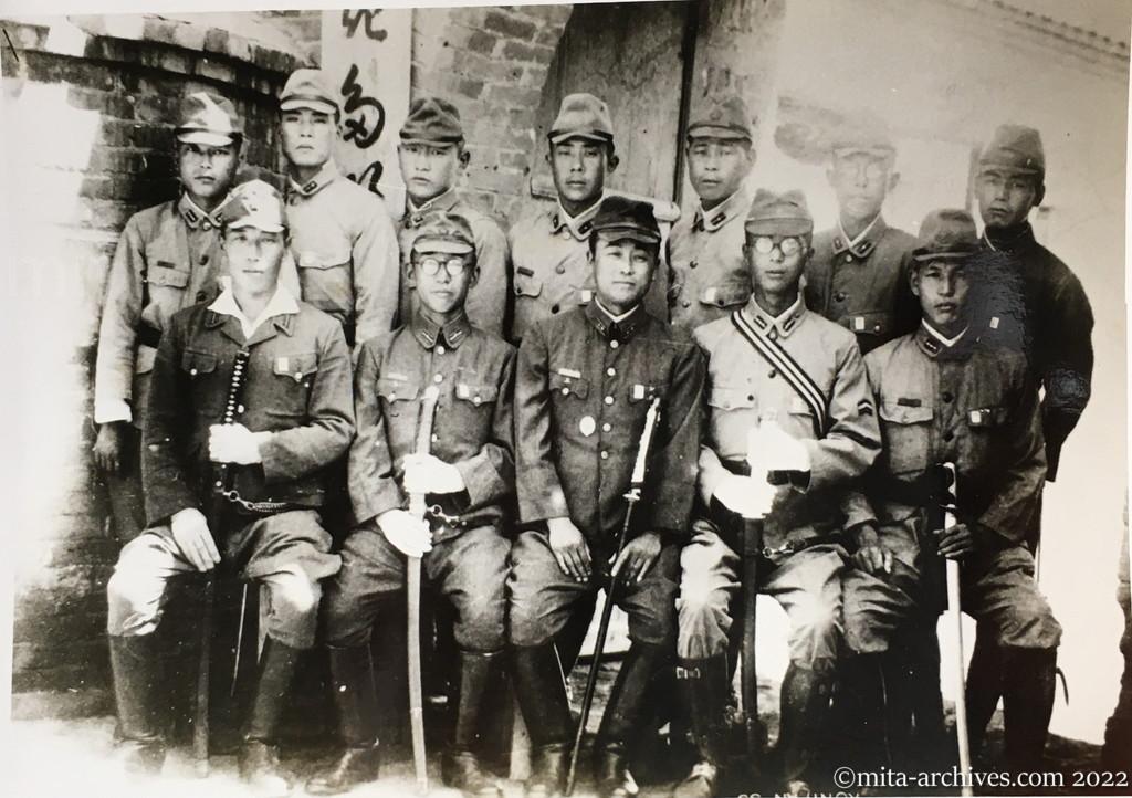 シベリヤ印象記(8)『冷たく光る銃口』 平成12年(2000)8月12日 画像は三田和夫24歳(前列右から2人目 205大隊第5中隊・考城県考城1945.07)