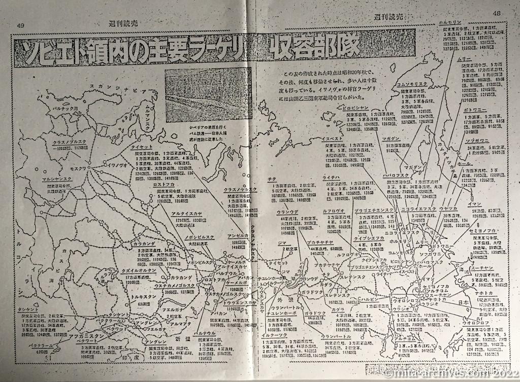 週刊読売(発行年月日不明)48~49ページ ソビエト領内の主要ラーゲリ収容部隊