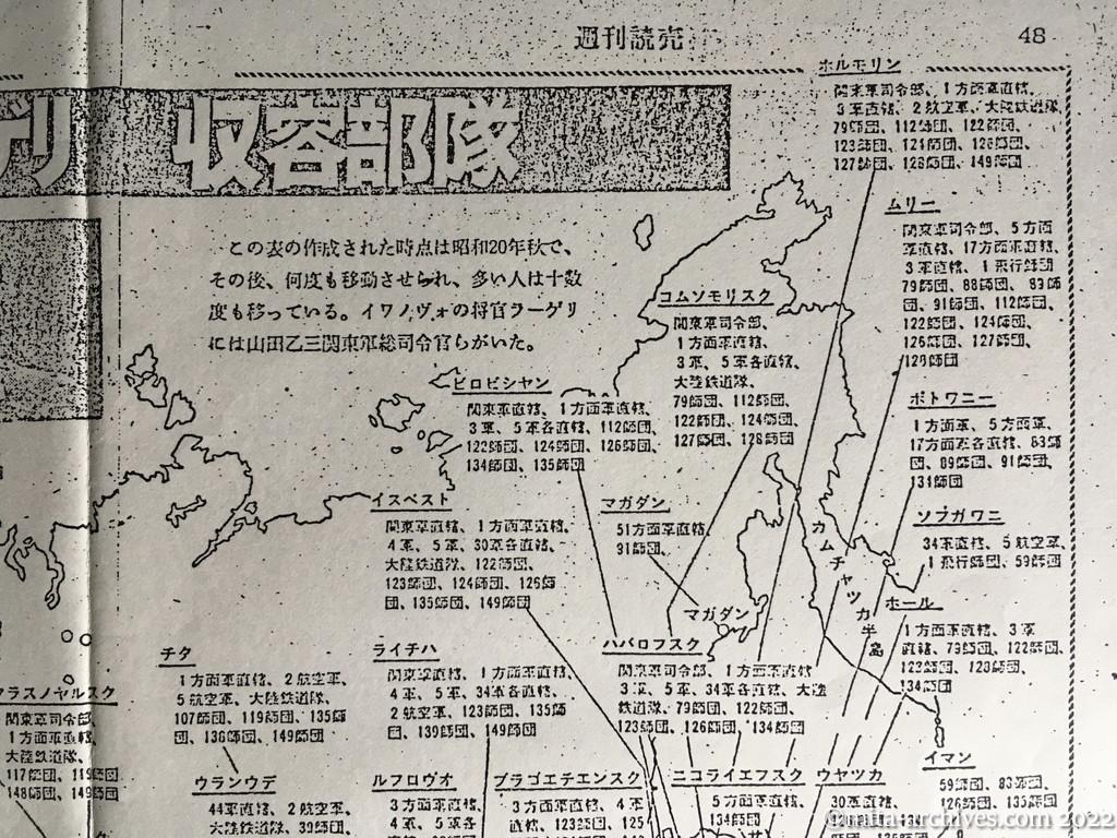 週刊読売(発行年月日不明)48~49ページ ソビエト領内の主要ラーゲリ収容部隊