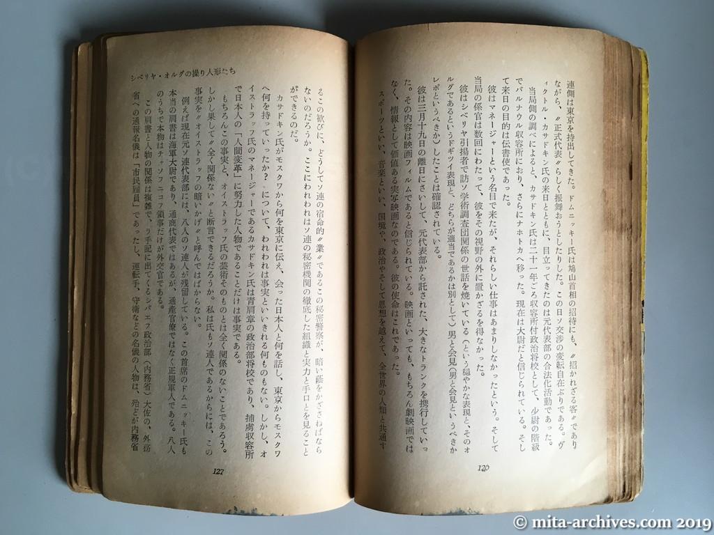 赤い広場ー霞ヶ関 p.126-127 Kasatkin, who impersonated Oistrakh’s manager and entered Japan, conducted spying activities such as repo with Japanese spies and taking out valuable information.
