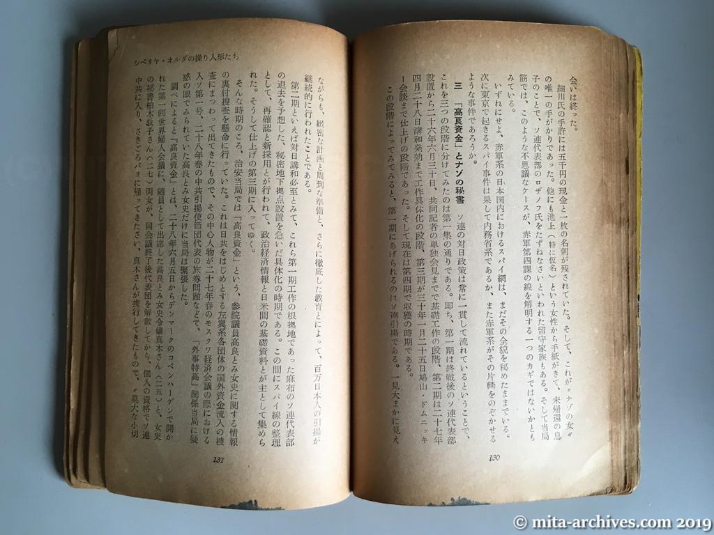 red-kasumigaseki_075 ← 前へ 次へ → 赤い広場ー霞ヶ関 p.136-137 The security authorities were working hard to back up the information about member of the House of councilors, Madame Tomi Kora, called “Kora fund”. 治安当局では「高良資金」という、参院議員高良とみ女史に関する情報の裏付捜査を懸命に行っていた。