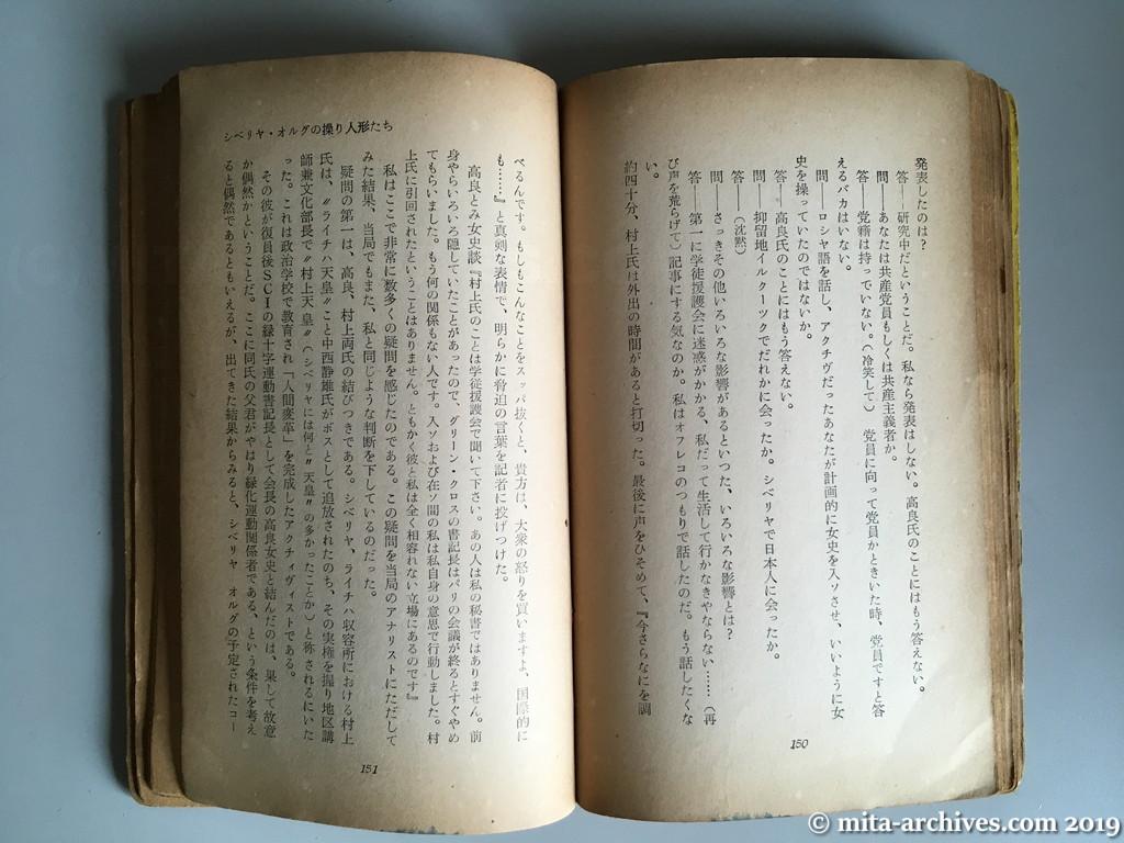red-kasumigaseki_082 ← 前へ 次へ → 赤い広場ー霞ヶ関 p.150-151 In Siberia, Activist Michitaro Murakami ruled the Raichikhinsk camp after the exile of “the Emperor Raichikhinsk” Shizuo Nakanishi, and was called “the Emperor Murakami”. シベリアで、アクチヴィスト村上道太郎は、〝ライチハ天皇〟中西静雄が追放された後、ライチハ収容所を支配し、〝村上天皇〟と呼ばれた。