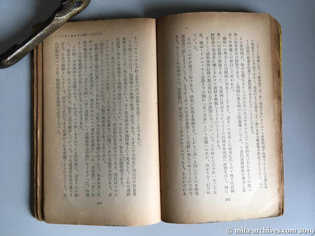 red-kasumigaseki_088 ← 前へ 次へ → 赤い広場ー霞ヶ関 p.162-163 The Japan-Soviet Trade Promotion Association was established as an external organization of the Japan-Soviet Friendship Association. And there was a Siberian-Organizer Minoru Tanabe. 日ソ親善協会の外郭団体として、日ソ貿易促進会が発足した。そしてそこには、シベリヤ・オルグの田辺稔がいた。