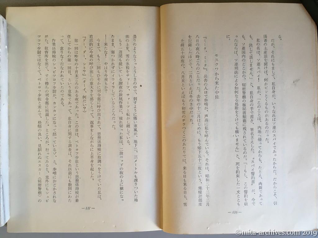 最後の事件記者 p.116-117 私自身の手で書き、署名さえした〝スパイ誓約書〟が、今でも、秘密警察の極秘書類箱に残されているのだ。「この誓約を破ったならば、如何なる処断をうけても構いません」と、死を約束した一文とともに。