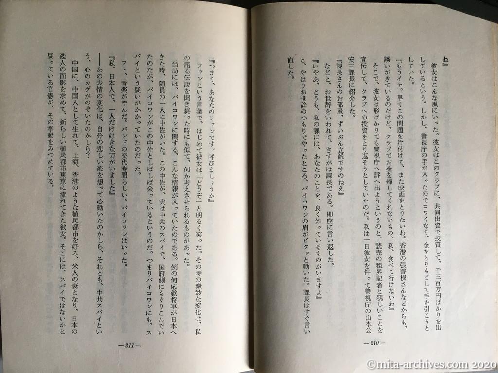 the-last-scoop-reporter_111 ← 前へ 次へ → 最後の事件記者 p.210-211 この中佐が、実は中共のスパイで、パイコワンがこの中佐としばしば会っている。つまりパイコワンにも、スパイという疑いがかかっていたのだ この中佐が、実は中共のスパイで、パイコワンがこの中佐としばしば会っている。つまりパイコワンにも、スパイという疑いがかかっていたのだ