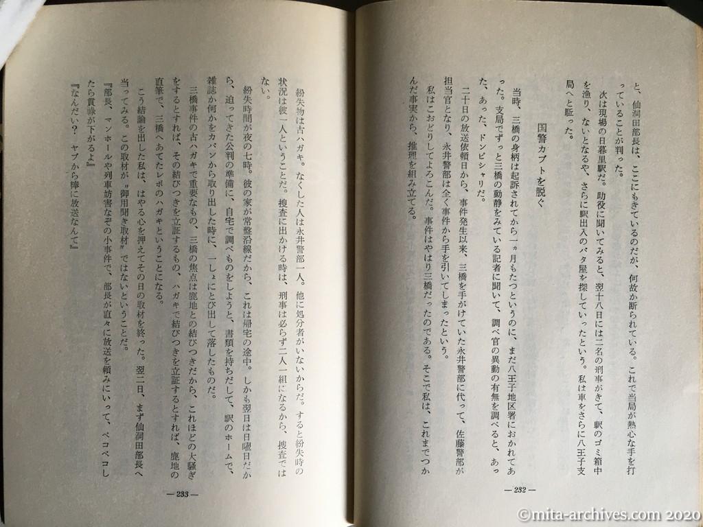 the-last-scoop-reporter_122 ← 前へ 次へ → 最後の事件記者 p.232-233 三橋事件の古ハガキで重要なもの、三橋の焦点は鹿地との結びつきだから、これほどの大騒ぎをするとすれば、その結びつきを立証するもの