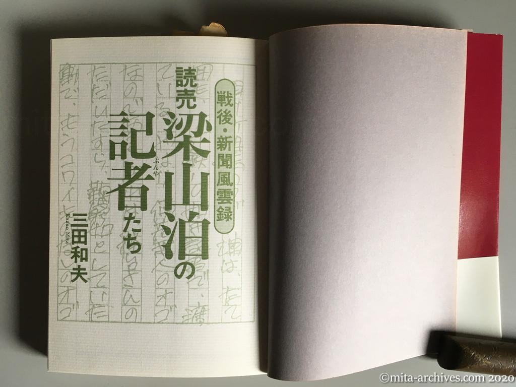 読売梁山泊の記者たち 見返し(あそび紙)-p.001本文扉 戦後・新聞風雲録 読売梁山泊の記者(ぶんや)たち 三田和夫 Kazuo Mita