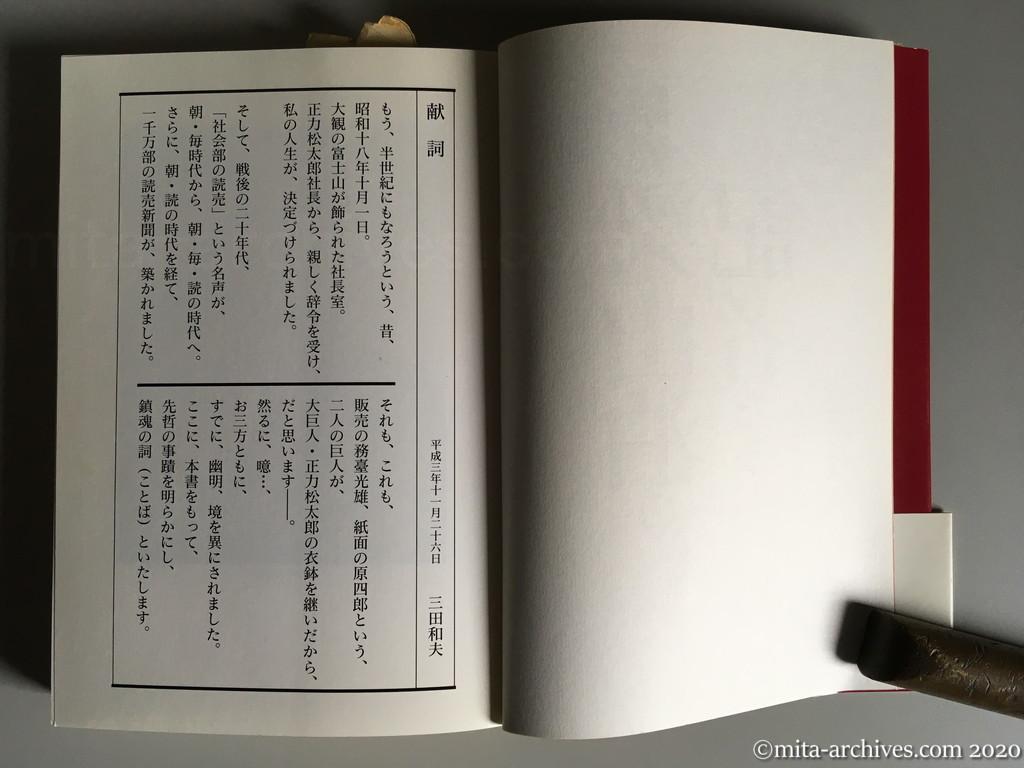 読売梁山泊の記者たち p.002-003 献詞 平成三年十一月二十六日 三田和夫